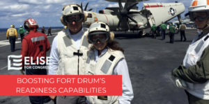 Elise worked tirelessly to save Fort Drum from devastating Obama-Biden sequestration cuts that would have crippled our military readiness and our national defense, and cost thousands of military jobs in our district. Elise advocated against these cuts and proudly delivered this significant result to our district and our military.